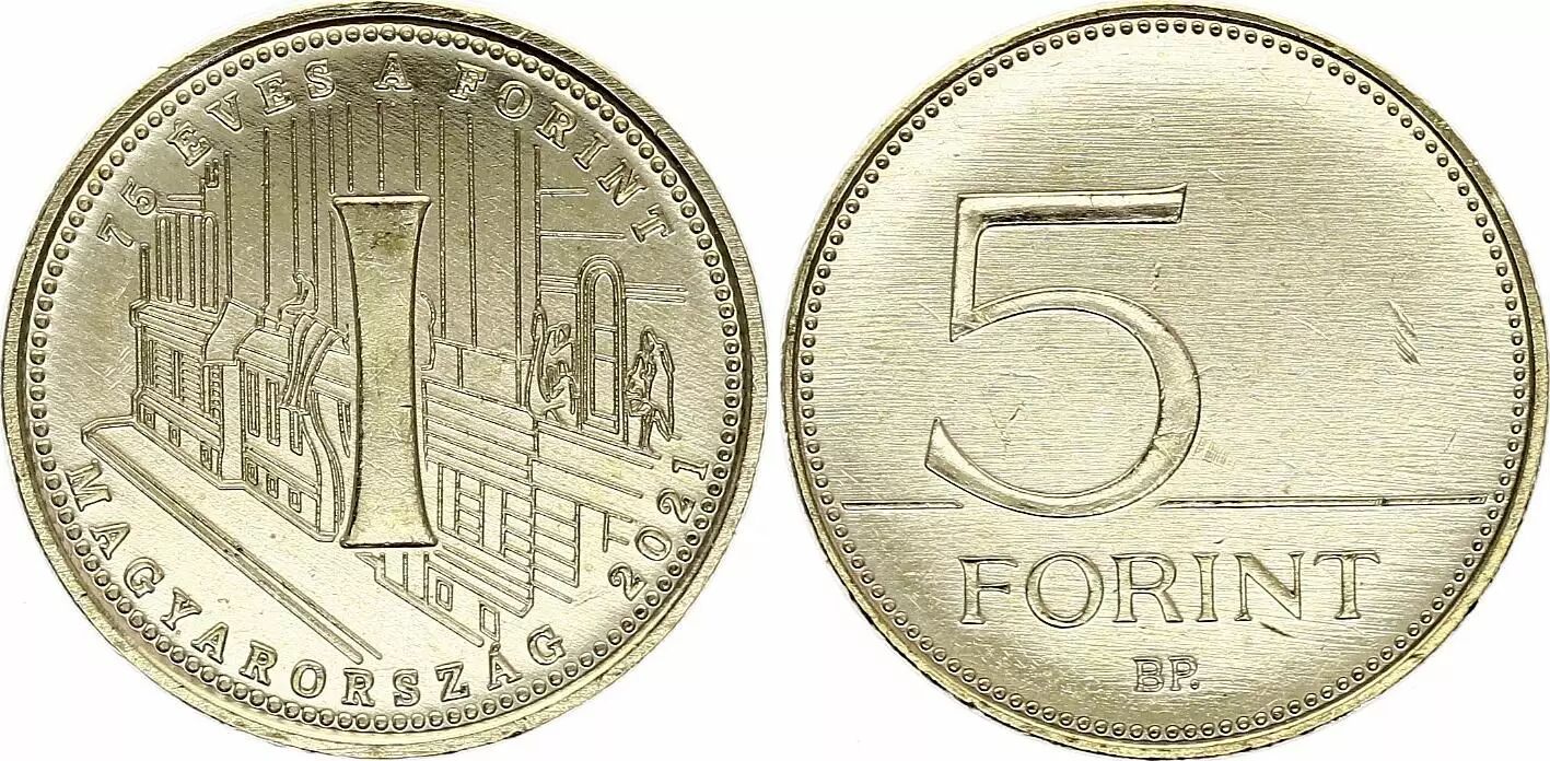 Home > World Coins > European Currencies > Hungary > Hungary 5 Forint - 75th anniversary of the introduction of the Forint - I - 2021