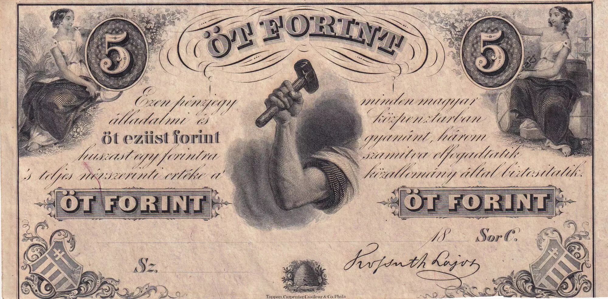 Banknote Hungary 5 Forint - Liberty and Justice - 1852 - Uniface - XF