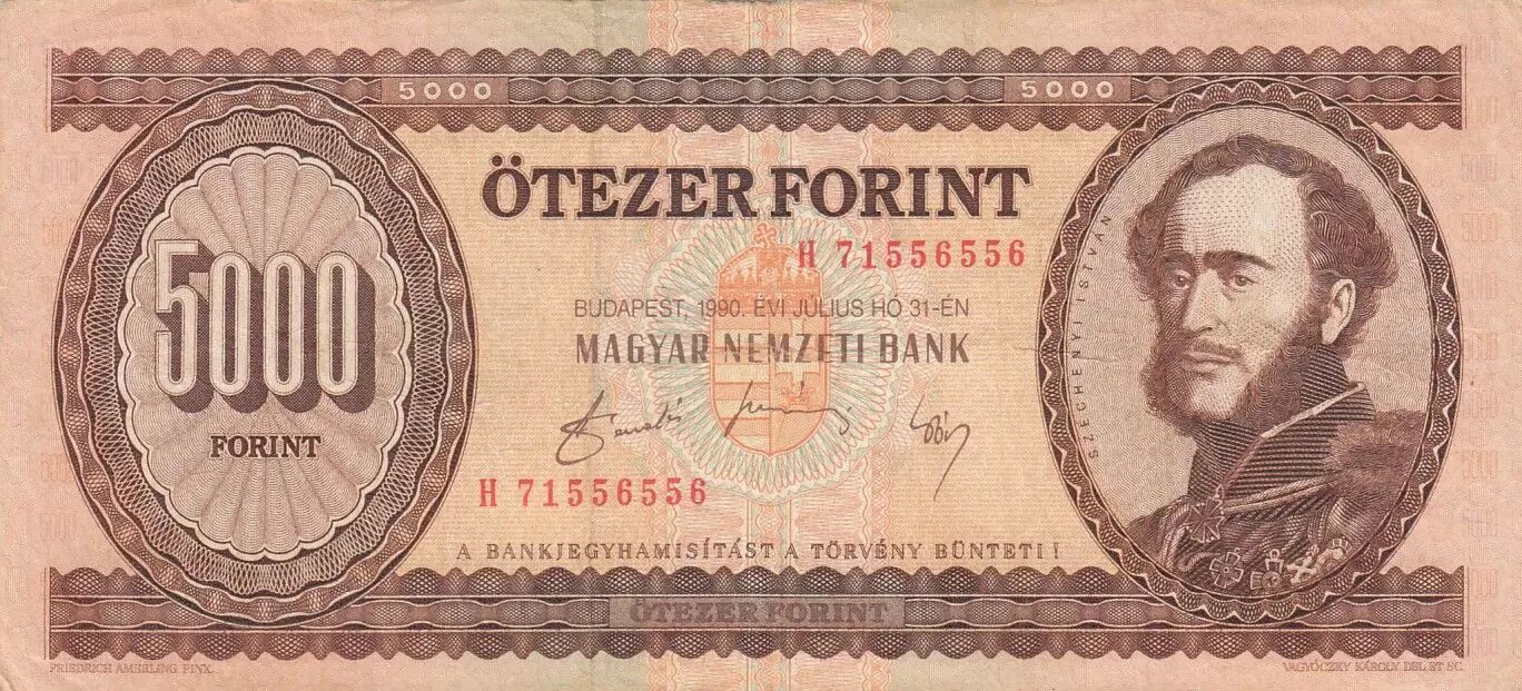 Home > > Hungary 5000 Forint - Istvan Szechenyi - Serial H - 1990