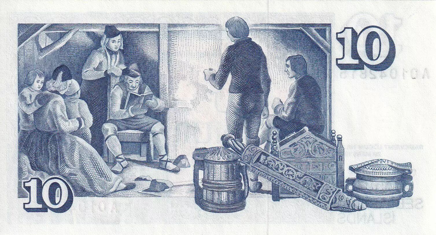 Banknote Iceland 10 Kronur - A. Jonsson - Old household scene - ND (1981) - P.48