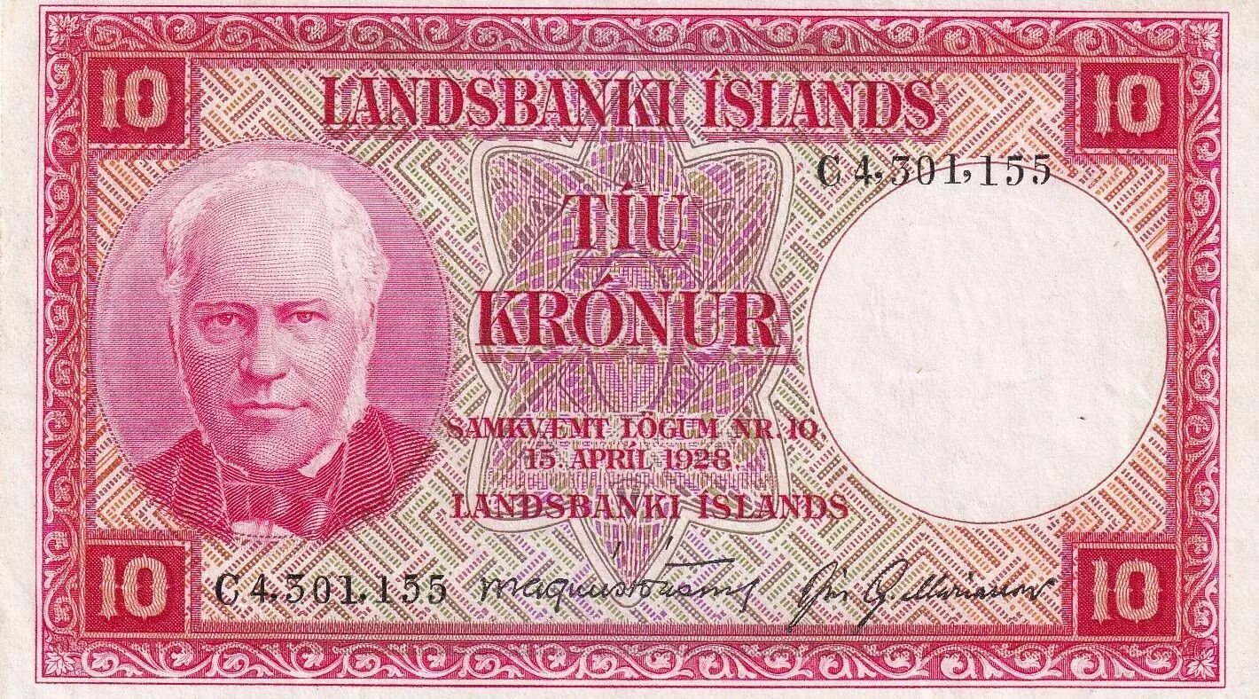 Banknote Iceland 10 Kronur - J. Sigurdsson - Waterfalls - 1928 - Serial C - P.33b