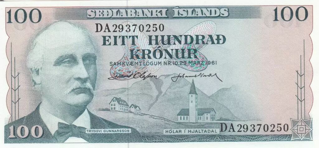 Home > > Iceland 100 Kronur 1961 - Tryggvi Gunnarsson