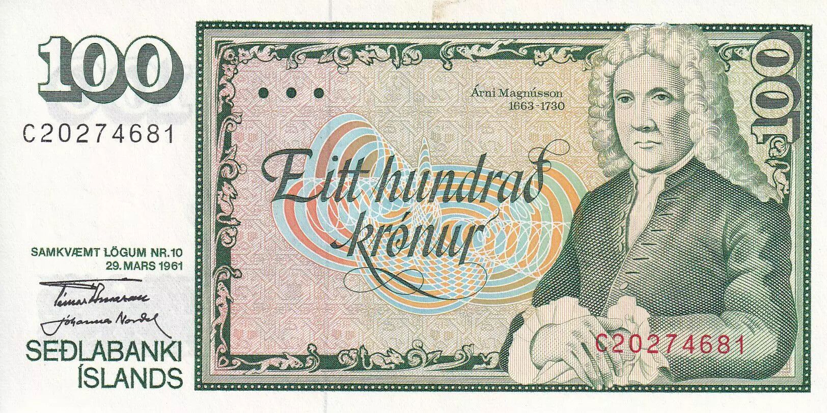 Banknote Iceland 100 Kronur - Arni Magnusson - 1961 - UNC - P.50