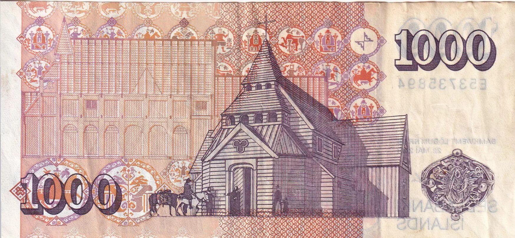 Banknote Iceland 1000 Kronur - B.B. Sveinsson - Church - 2001 (2009) - P.59