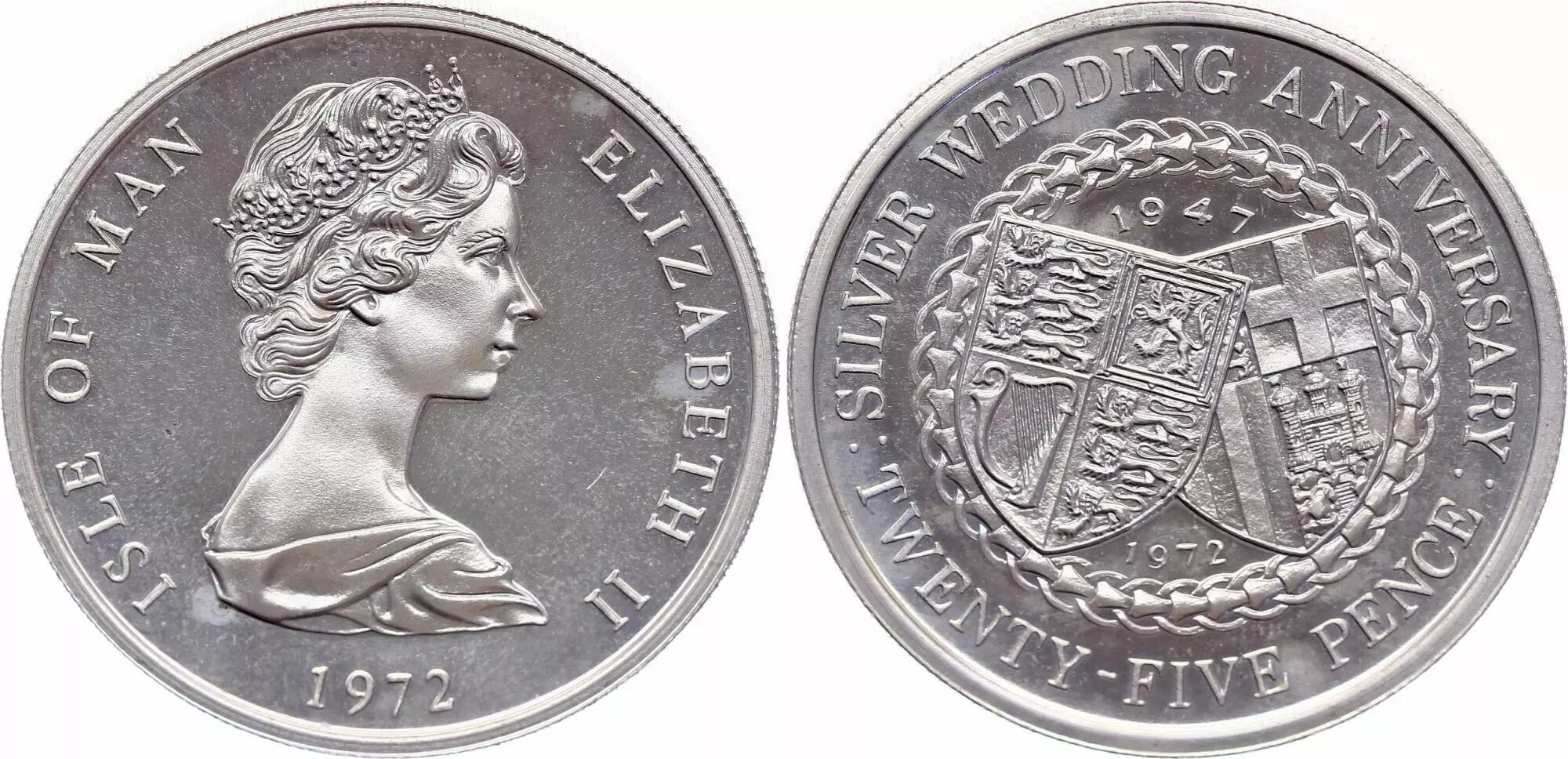 Accueil > Archivage > Ile de man 25 Pence - Elisabeth II - 25 ans de mariage - 1947-1972 - Argent