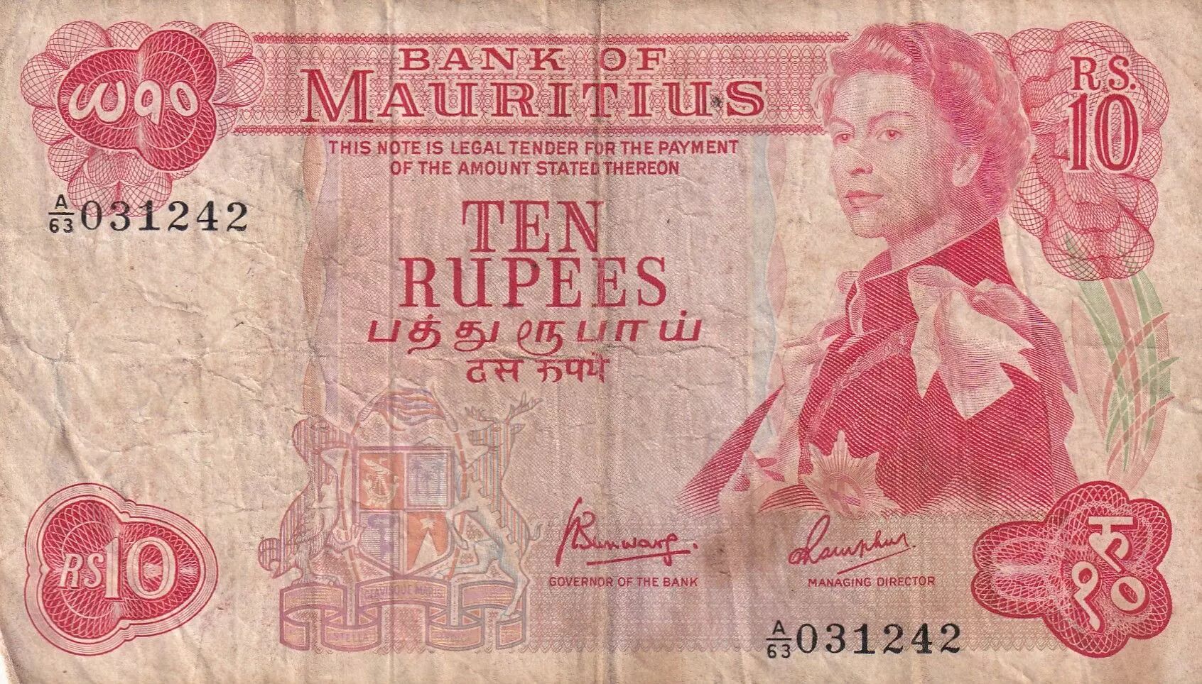 Accueil > Archivage > archivage-Billets du Monde > Ile Maurice 10 Rupees Elisabeth II - 1967 - Série A.63