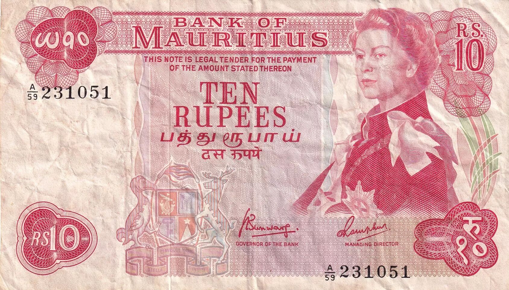 Accueil > Billets du Monde > Billets d'Afrique > Ile Maurice > Ile Maurice 10 Rupees - Elisabeth II - ND (1967) - Parlement - Série A.59 - P.31b