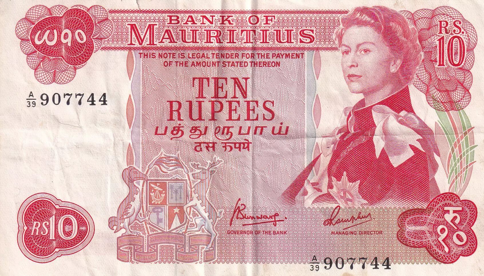 Billet Ile Maurice 10 Rupees - Elisabeth II - Série A.39 - TTB - P.31c