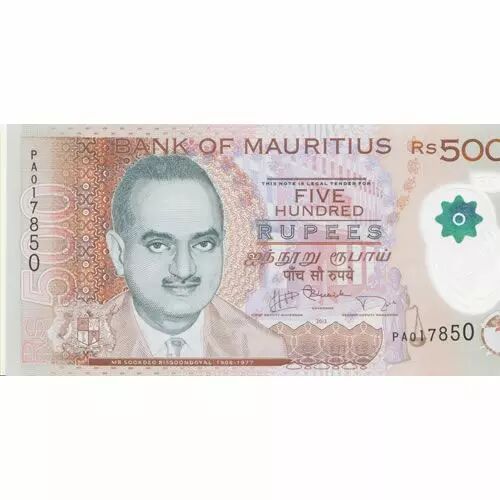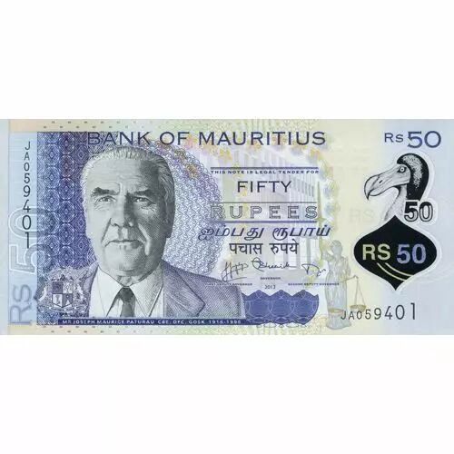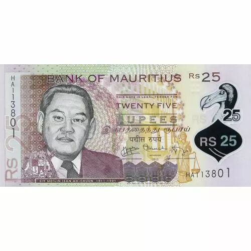 Maurice est une île de l'Océan Indien située à l'est de Madagascar. Sa monnaie est aujourd'hui la roupie mauricienne. Il s'agit des derniers et nouveaux billets émis par l'Ile Maurice.