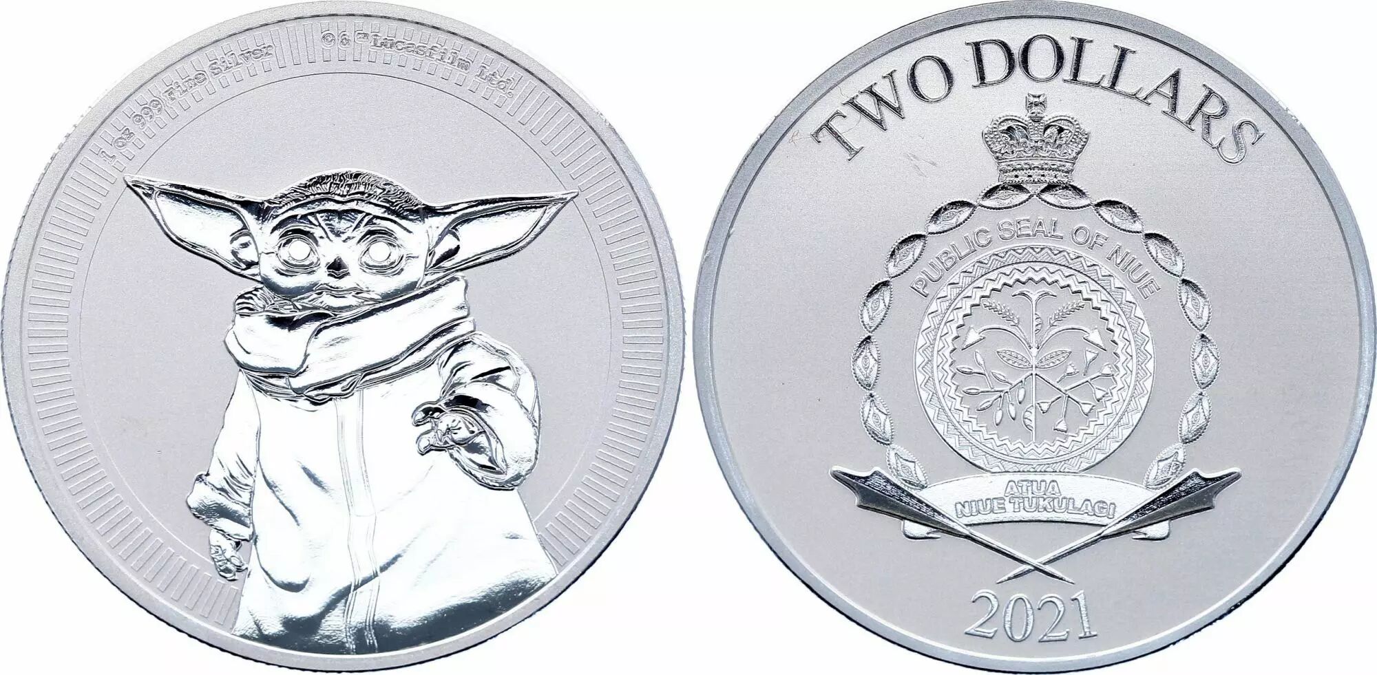Pièce Ile Niue 2 Dollars - 1 Once Grogu bébé Yoda - Star Wars Argent 2021