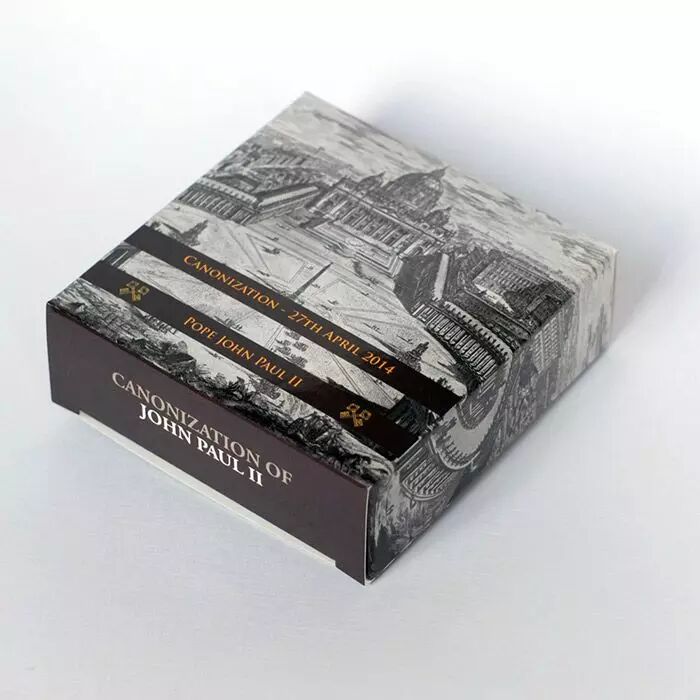 Pape pendant 27 ans Jean-Paul II a été canonisé en avril 2014. Cette pièce en argent d'une demi-once commémore cette décision de l'Eglise honnorant le premier pape slave de l'Histoire.