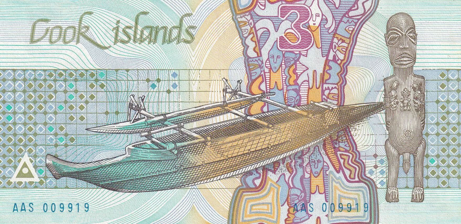 Billet Iles Cook 3 Dollars - Bateau - Requin - 1987 - Série AAS - Petit numéro - P.3