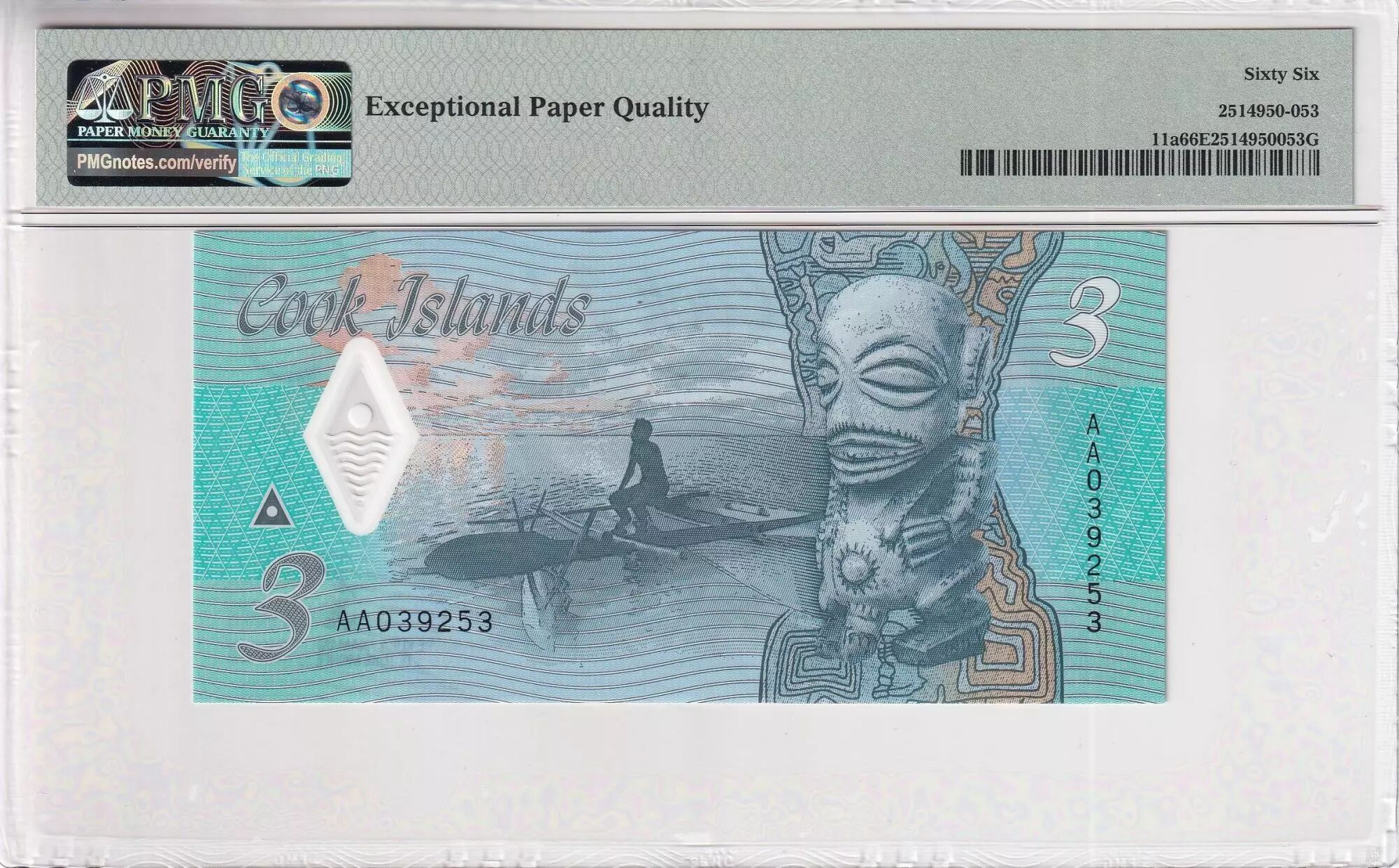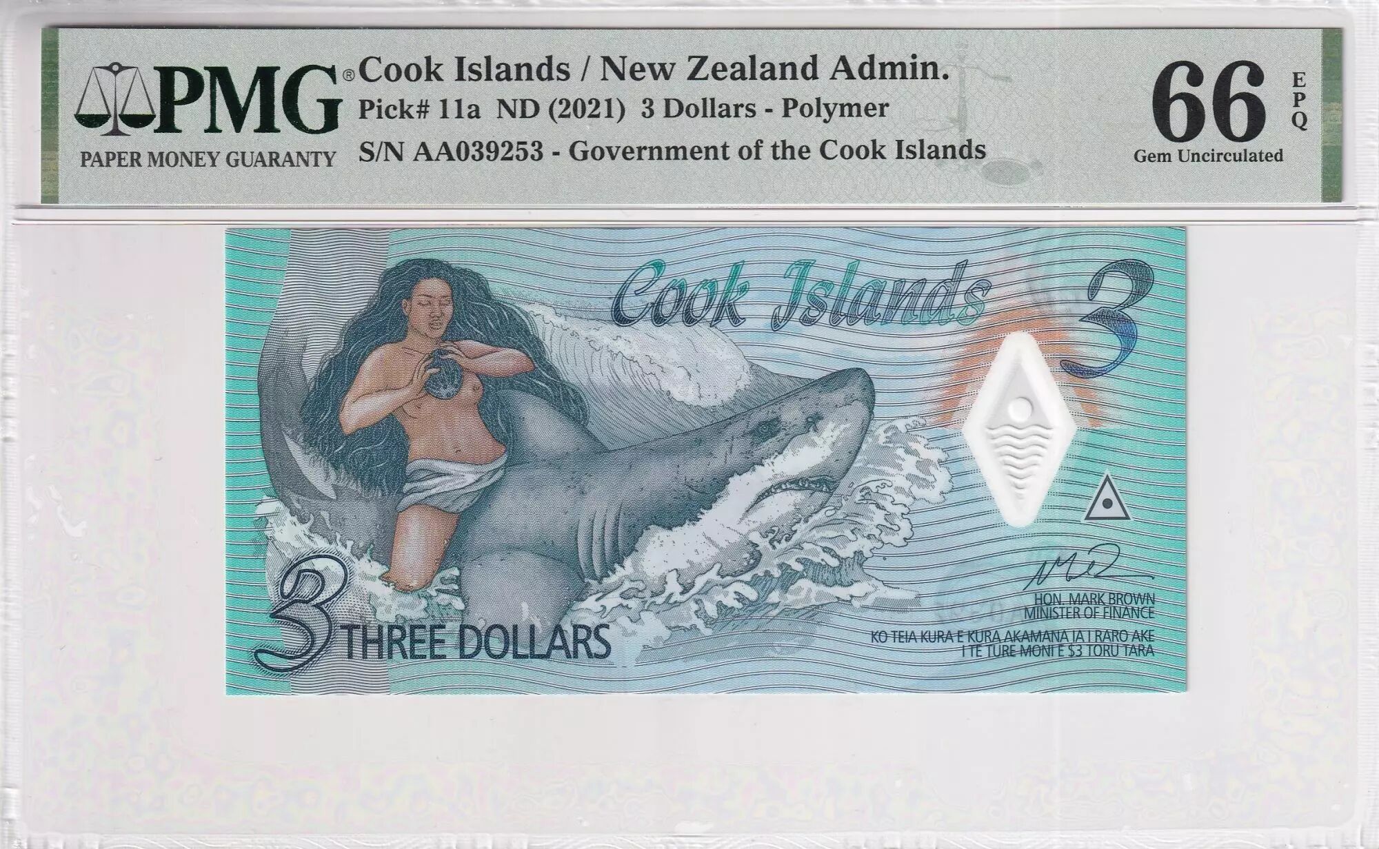 Billet Iles Cook 3 Dollars - Ina - Requin - PMG 66 EPQ