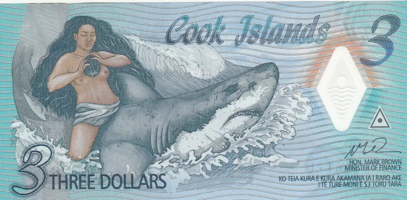 Accueil > Archivage > archivage-Billets du Monde > Iles Cook 3 Dollars - Ina - Requin - Polymer - 2021 - Série AA