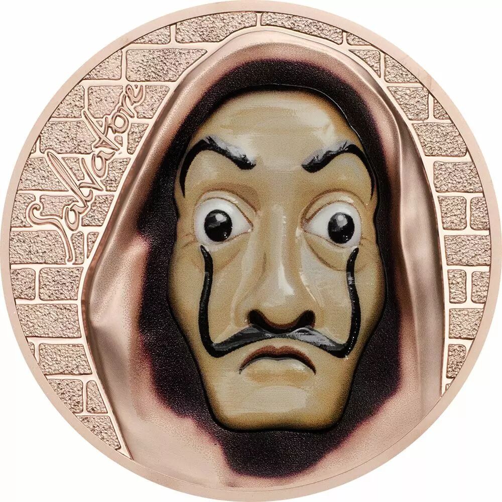 Pièce Iles Cook Salvatore Dali - Masques révolutionnaires - 1 Once Argent plaqué Or Rose et colorisation - Îles Cook 2018