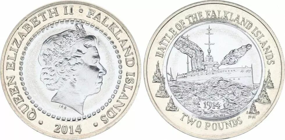 Pièce Iles Falkland 2 Pounds - Iles Falkland - Elisabeth II - Bataille des Malouines 1914