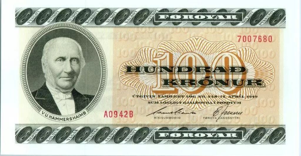 Accueil > Archivage > Iles Féroé 100 Kronur V.U. Hammershaimb - montagne - 1994 - Neuf - P.21f