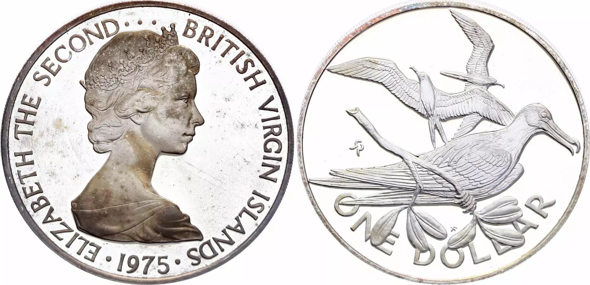 Pièce Iles Vierges Britanniques 1 Dollar Elisabeth II - Fregates - 1975 - Argent - Frappe BE