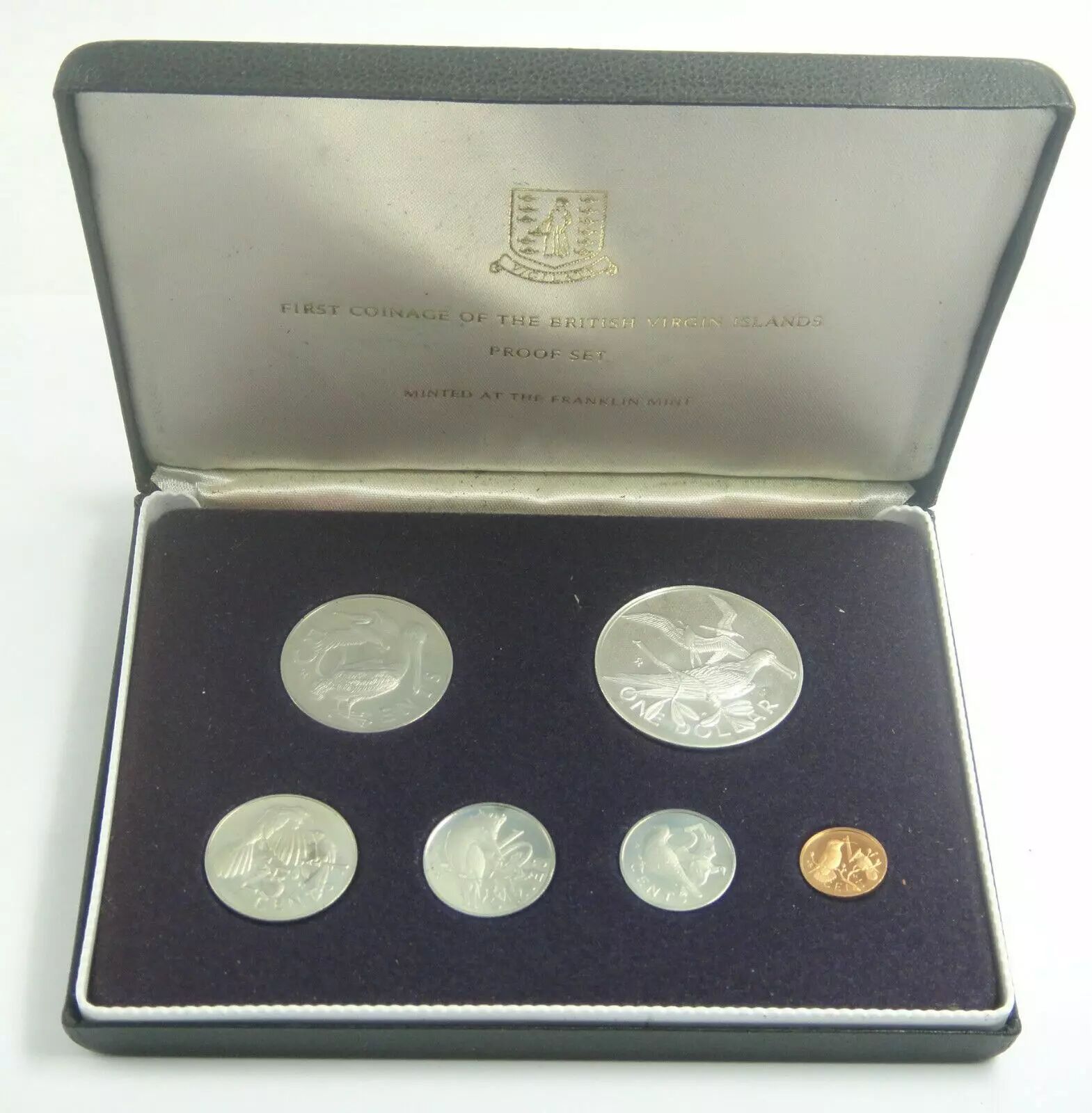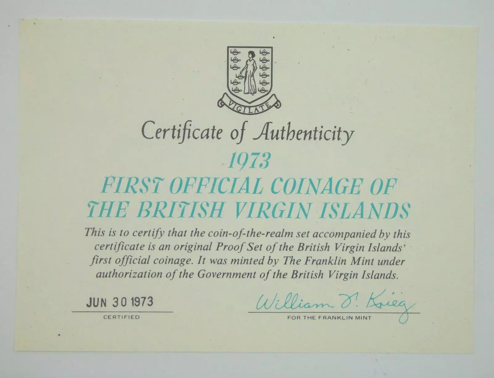 Coffret de 1973 des îles Vierges britanniques avec coffret d’origine et certificat. Première année d’émission.