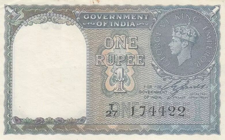 Billet Inde 1 rupee - George VI - Série T27 - 1944
