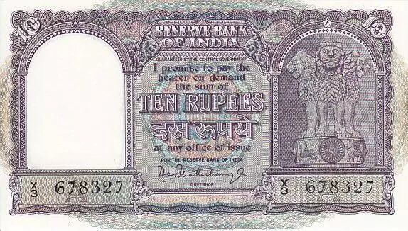 Billet Inde 10 Rupees, Colonne aux lions - Boutre - 19(62-67) - P.40 a - X3