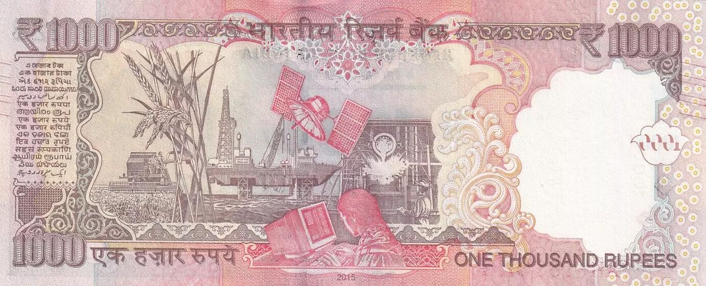 Accueil > Billets du Monde > Billets d'Asie > Inde > Inde 1000 Rupees - Mahatma Gandhi - Allégorie à l'économie de l'Inde - 2015