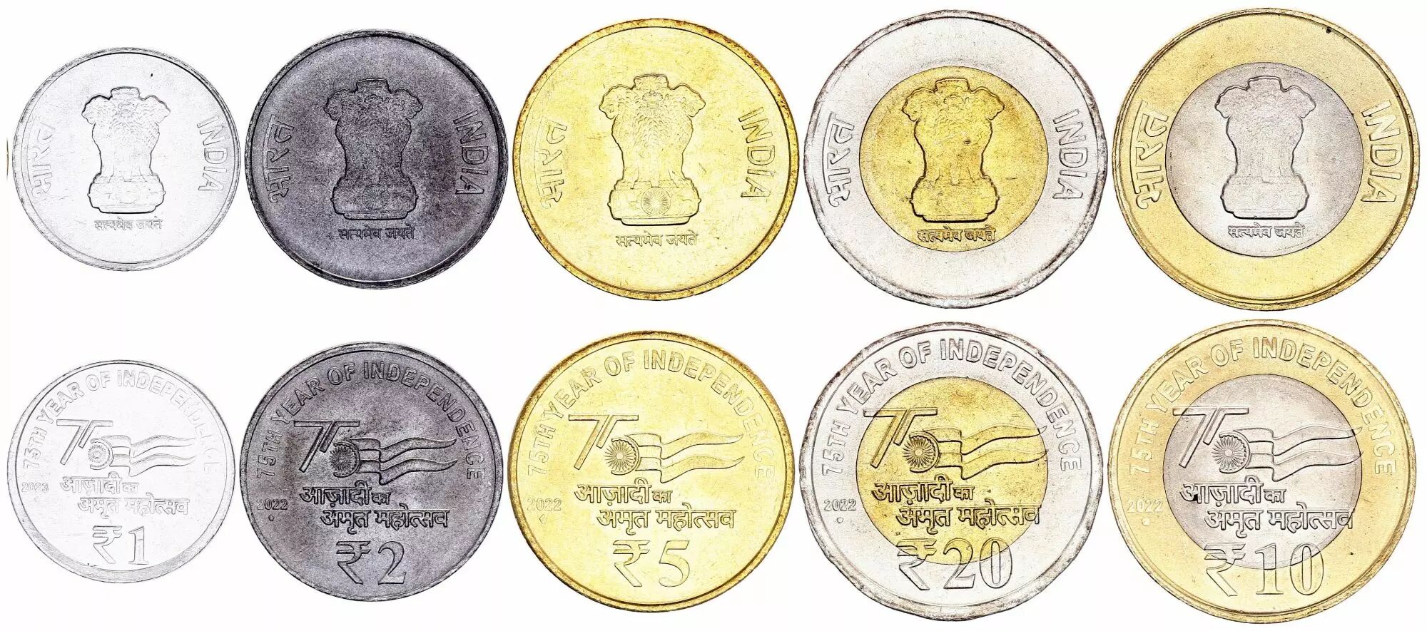 1,2,5,10 et 20 Roupies - Série de 5 Monnaies - Inde 2022-2023 - SPL
