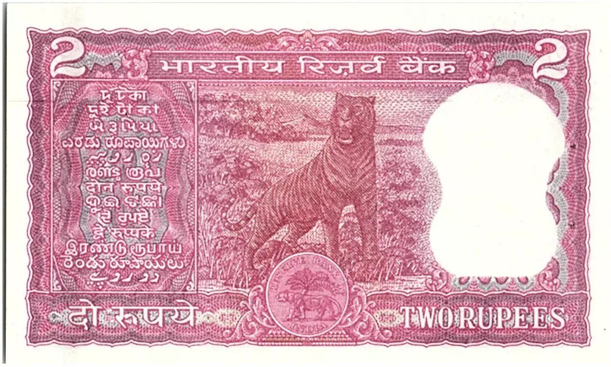 Billet Inde 2 Rupees, Colonne aux Lions - Tigre - 1970 - P.53 a