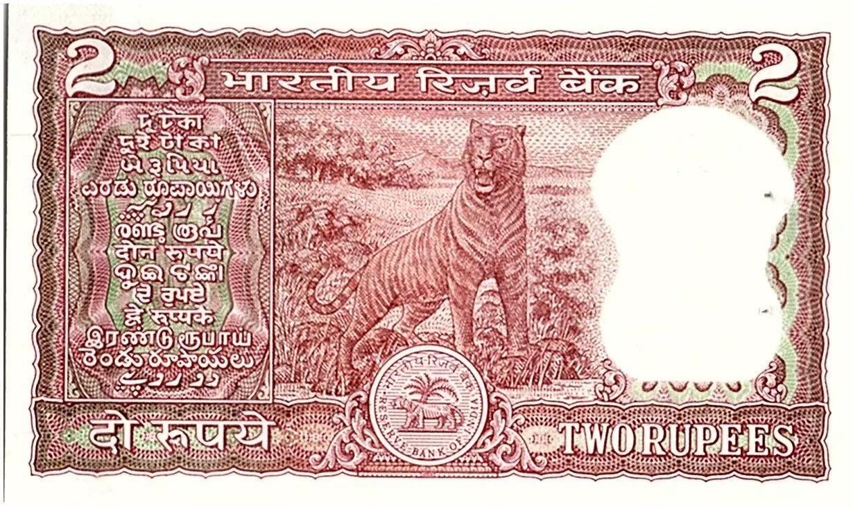Accueil > Billets du Monde > Billets d'Asie > Inde > Inde 2 Rupees, Colonne aux Lions - Tigre - 1985-90 - P.53 A