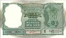 Billet Inde 5 Rupees, Colonne aux Lions - Antilopes - 19(57-62) - P.35b