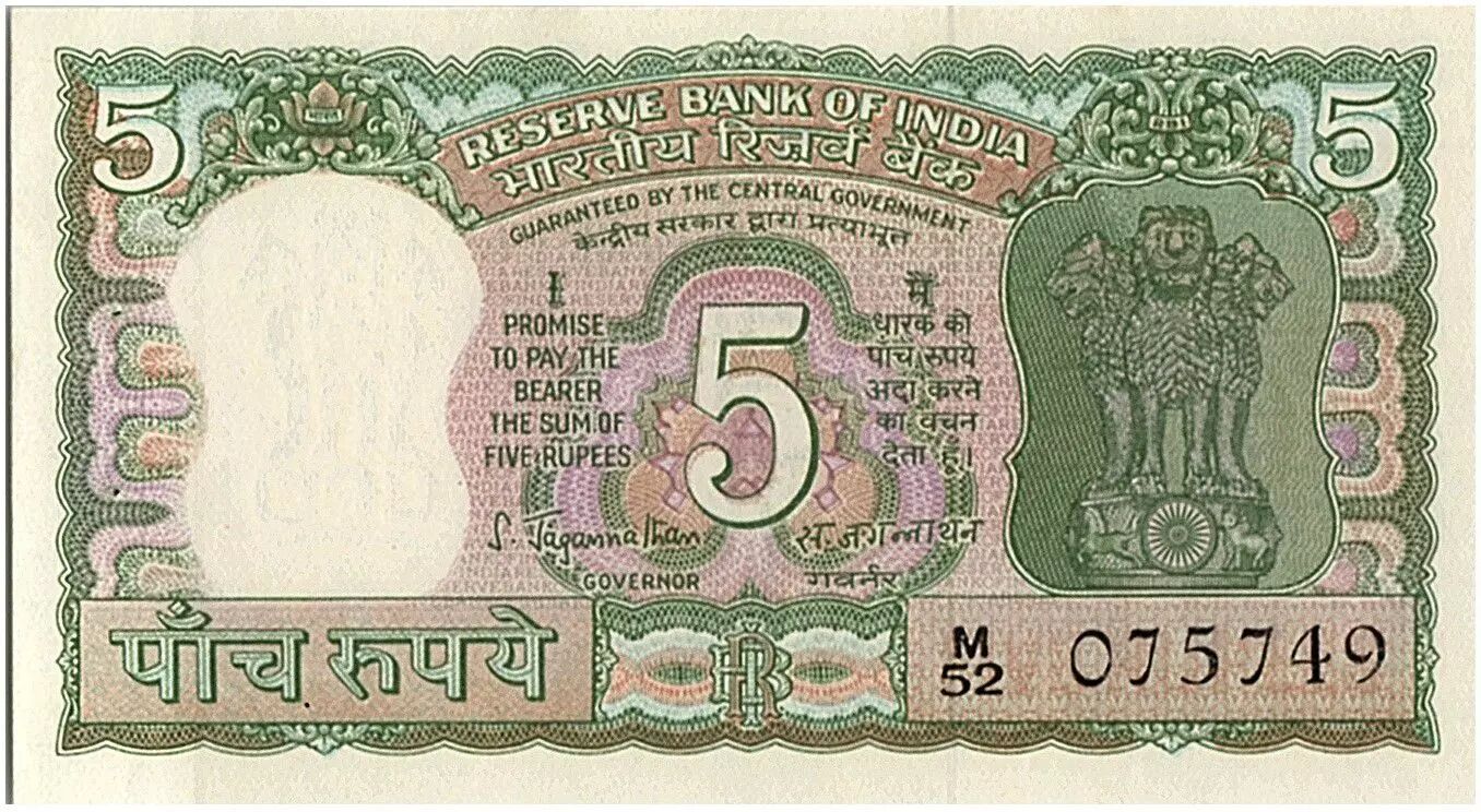 Billet Inde 5 Rupees, Colonne aux Lions - Antilopes - 1970 - P.55