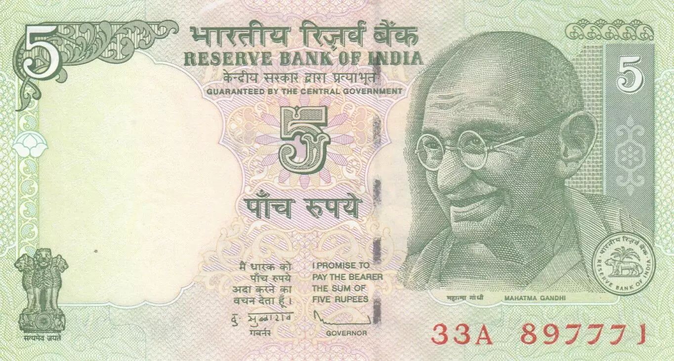 Billet Inde 5 Rupees - Gandhi - Agriculture - 2010 - Série 33A
