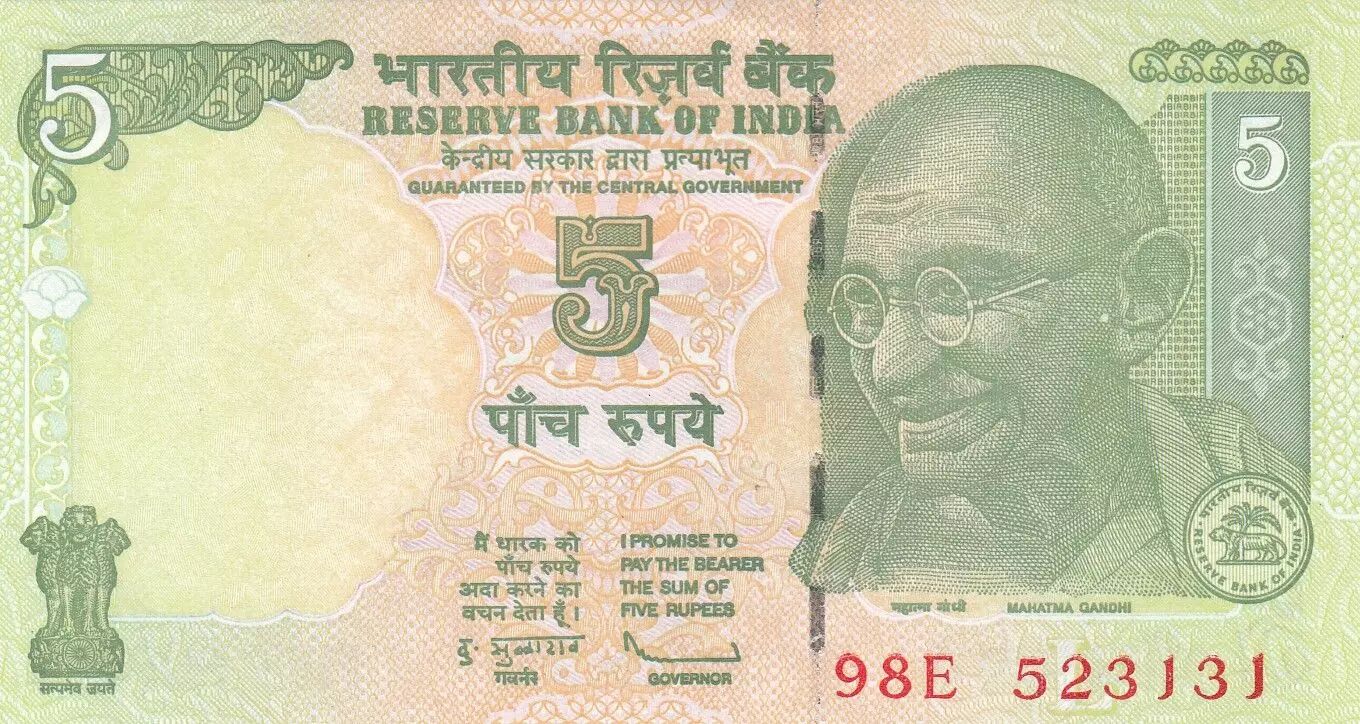 Billet Inde 5 Rupees - Gandhi - Agriculture - 2010 - Série 98E