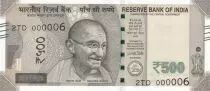 Billet Inde 500 Rupees, Mahatma Gandhi - 2017 Série 2TD - Petit numéro 000006