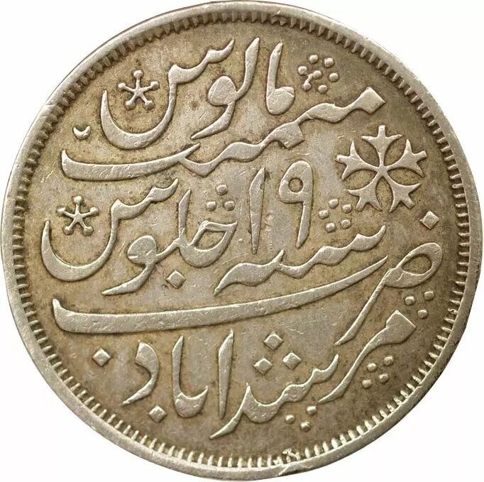 Type immobilisé au nom de Shah Alam II pour l'atelier de Murshidabad et la 19ème année de règne.