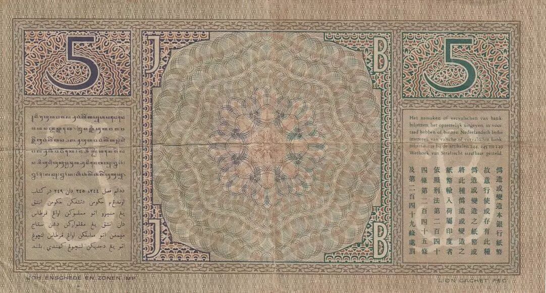 Billet Indes Néerlandaises 5 Gulden - Danseurs Javanais - 1939 - P.78c
