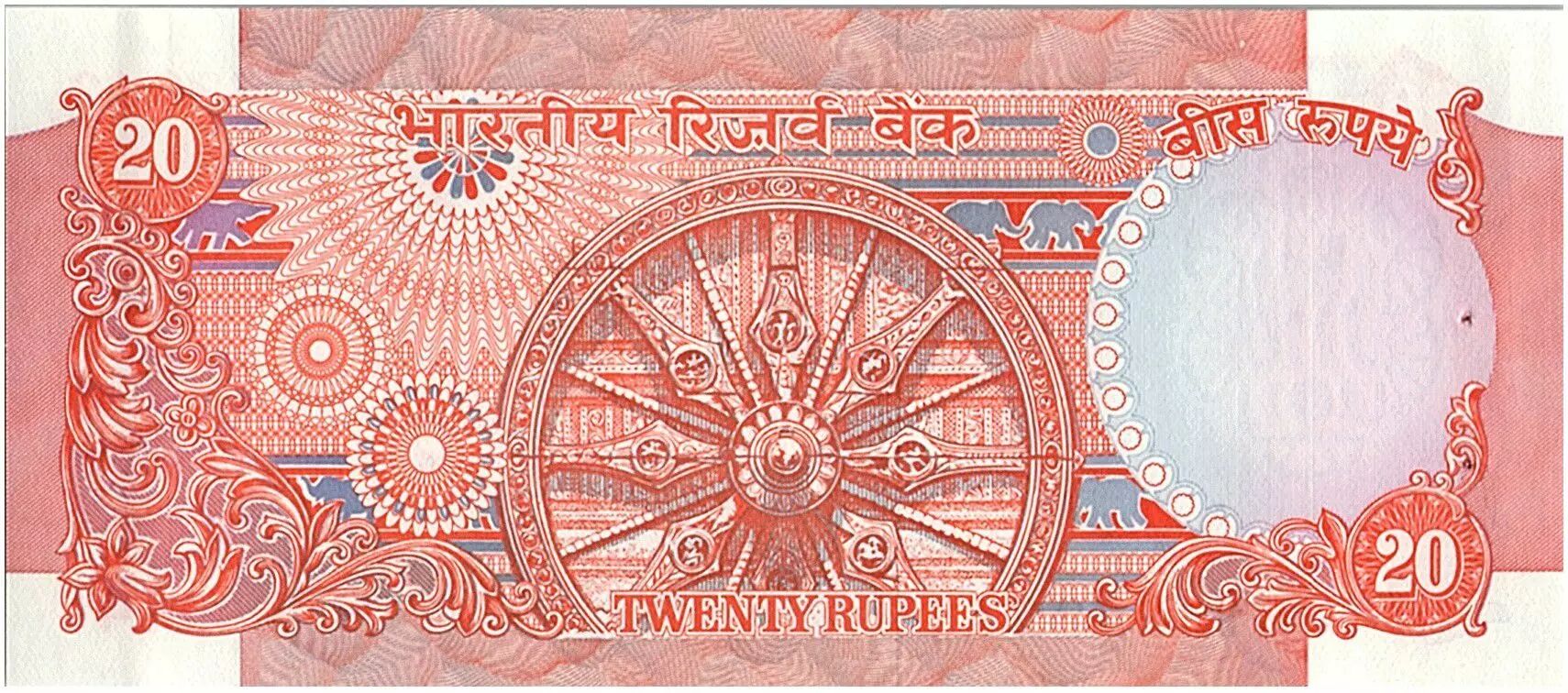 Banknote India 20 Rupees, Ashoka column - Wheel of time - 1985 - P.82 i