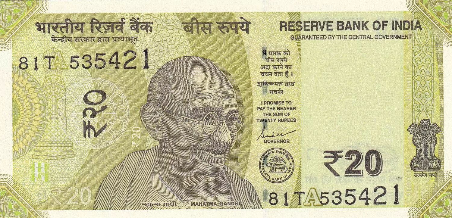 Banknote India 20 Rupees - Gandhi - 2023 - Serial 81T - Letter A