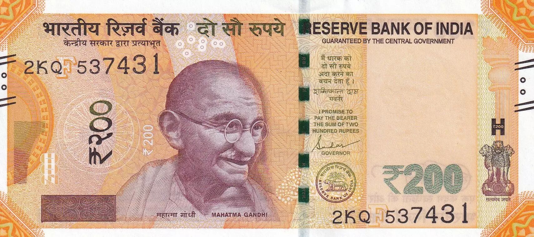 Banknote India 200 Rupees - Gandhi - 2023 - Serial 2KQ- Letter F