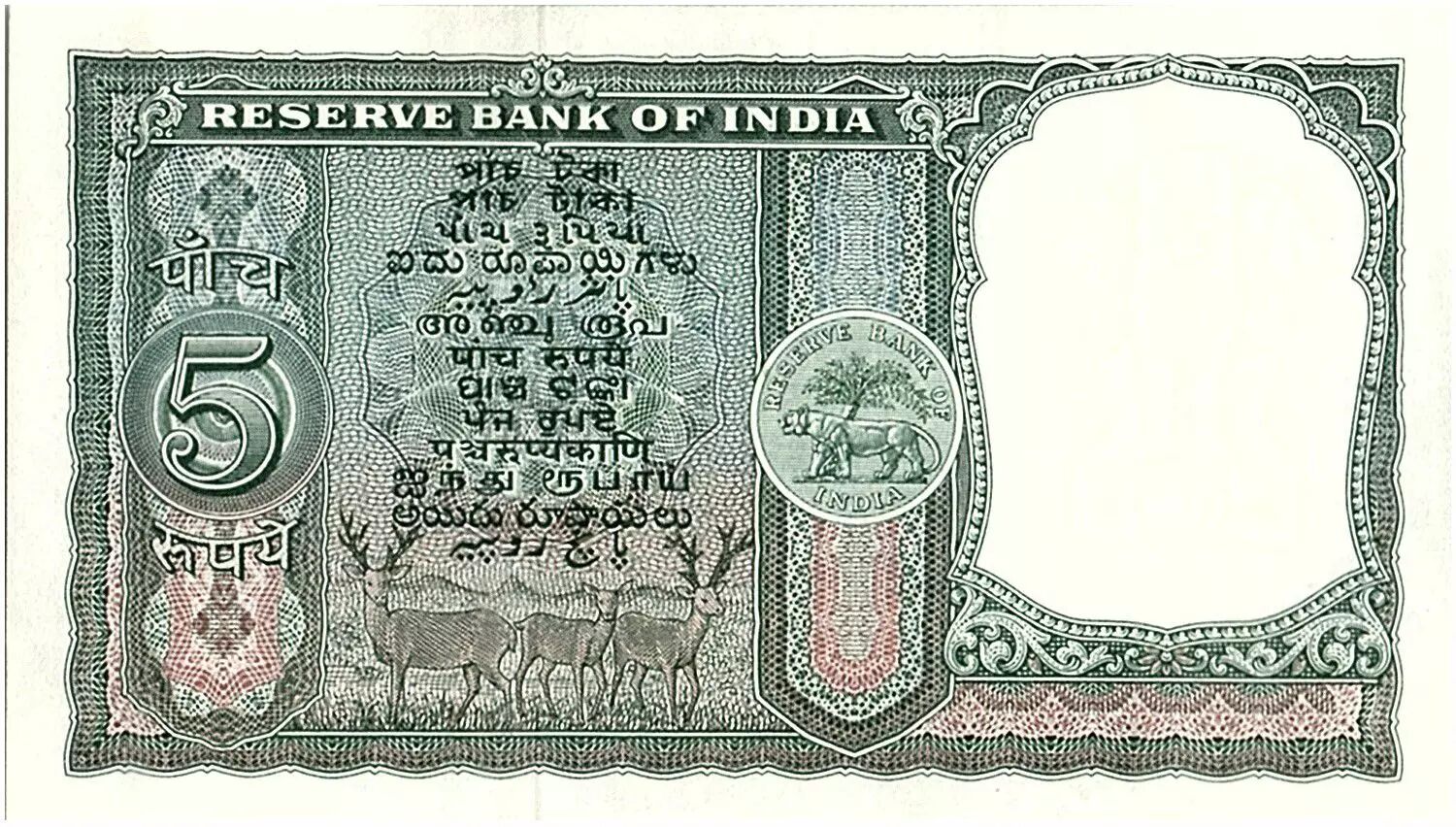 Home > > India 5 Rupees, Ashoka Column- Antelopes - 1967 - P.36 a