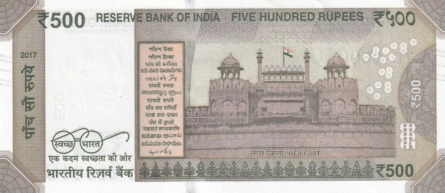 Home > > India 500 Rupees, Mahatma Gandhi - 2017 Serial 2TD - low number 000010