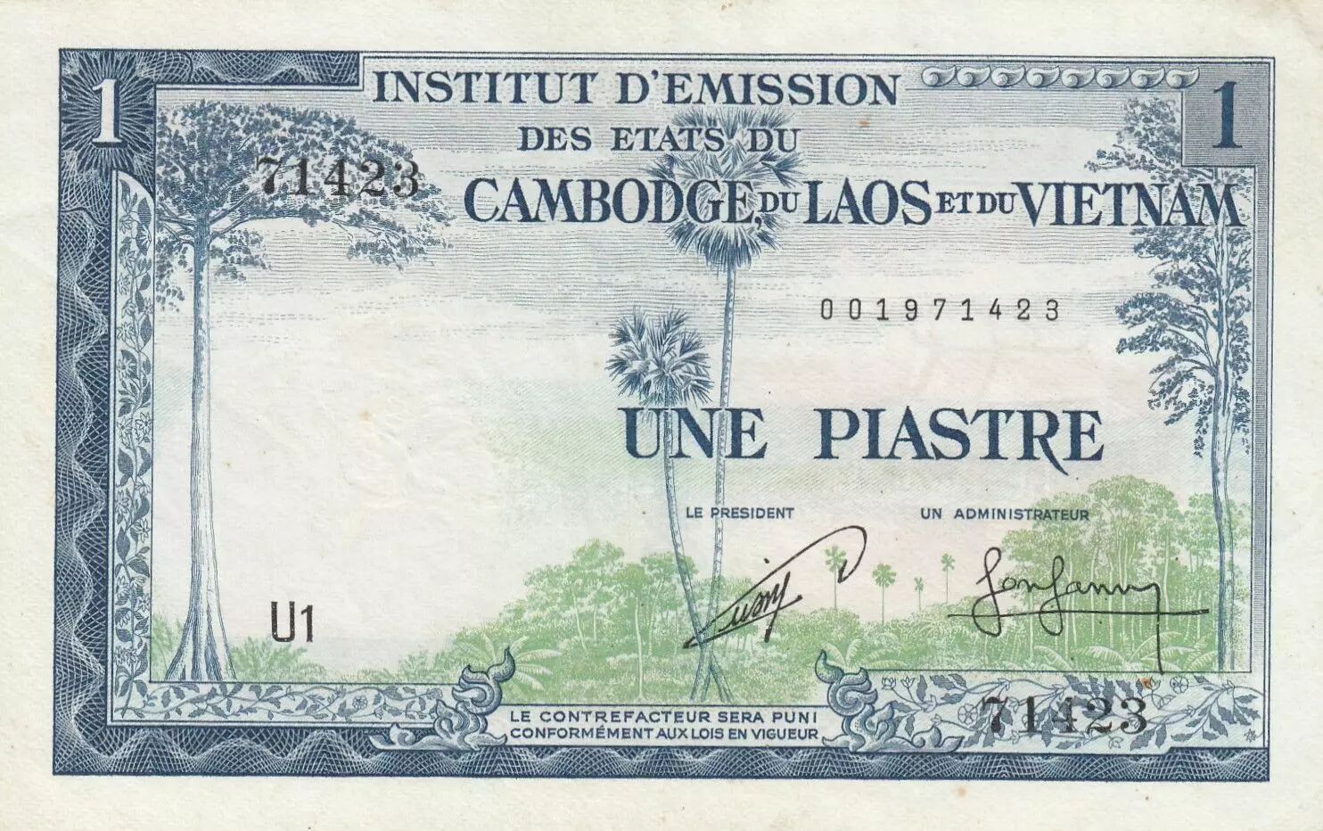 Billet Indo-Chine Fr. 1 Piastre - Arbres - Emissions pour le Cambodge - ND (1954) - Série U1