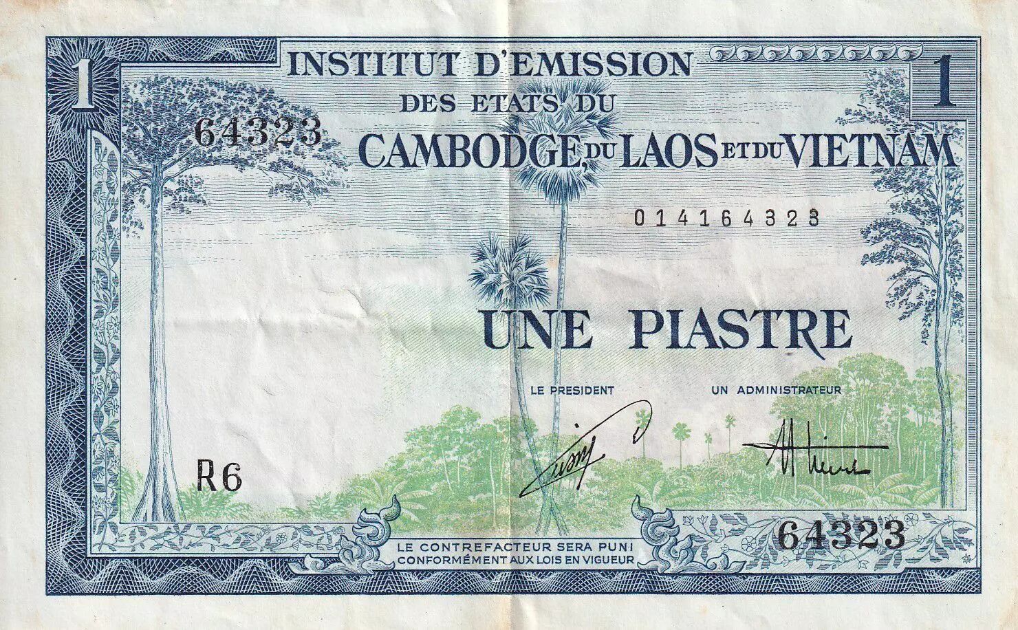 Accueil > Archivage > Indo-Chine Fr. 1 Piastre - Bleu - Dragon - ND (1954) - Série R.6 - P.105