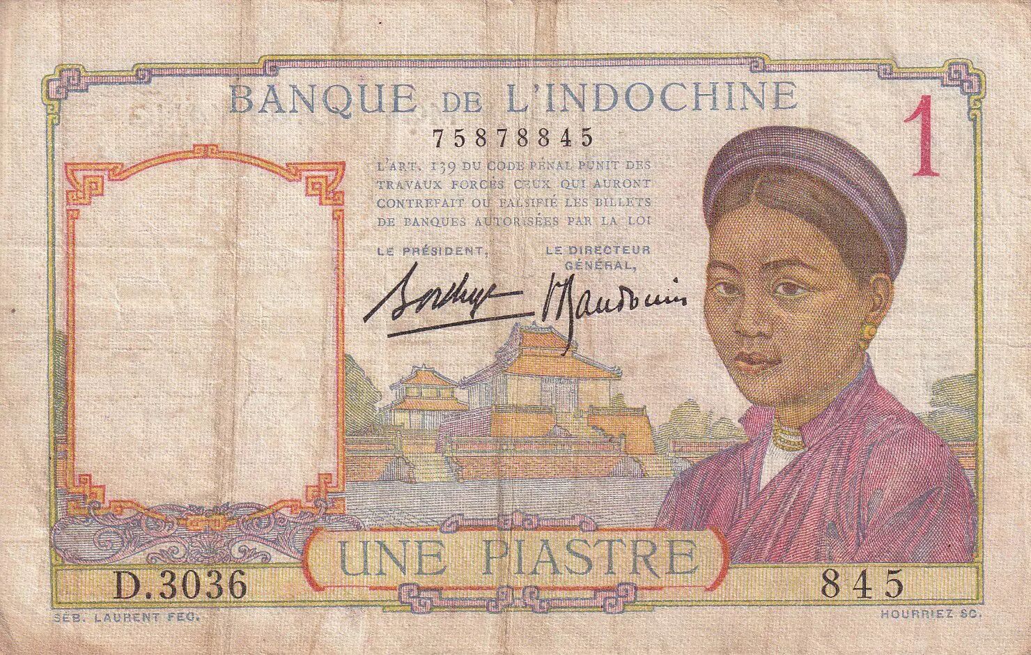 Accueil > Archivage > Indo-Chine Fr. 1 Piastre - Femme - Temple - ND (1936) - Série D.3036 - P.54b