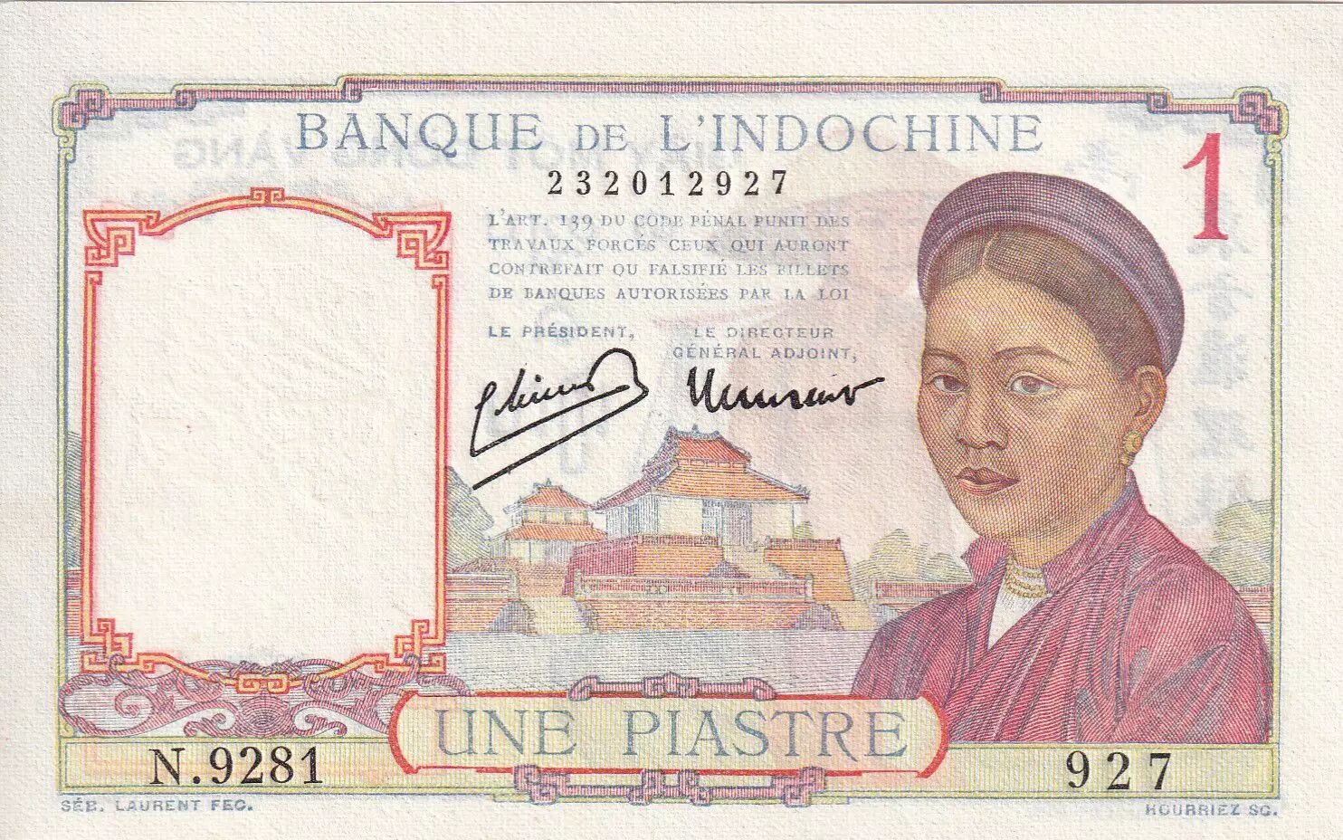Accueil > Archivage > Indo-Chine Fr. 1 Piastre - Femme - Temple - ND (1946) - Série N.9281 - P.54c