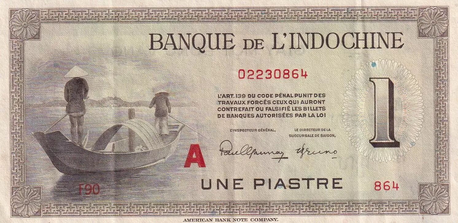 Accueil > Archivage > Indo-Chine Fr. 1 Piastre - Hommes et bateau - ND (1945) - Lettre A - P.76b