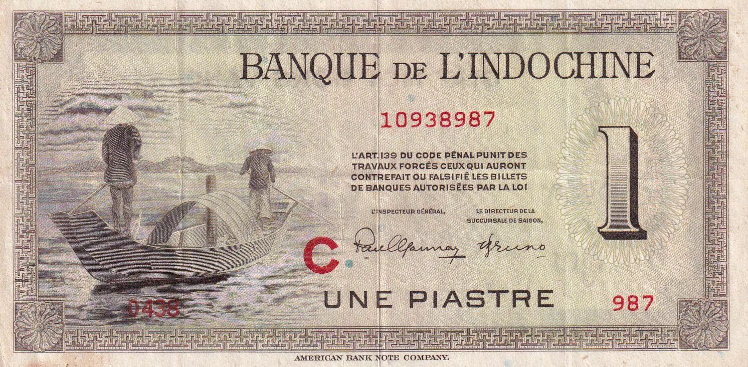 Accueil > Archivage > Indo-Chine Fr. 1 Piastre - Hommes et bateau - ND (1945) - Lettre C - P.76b