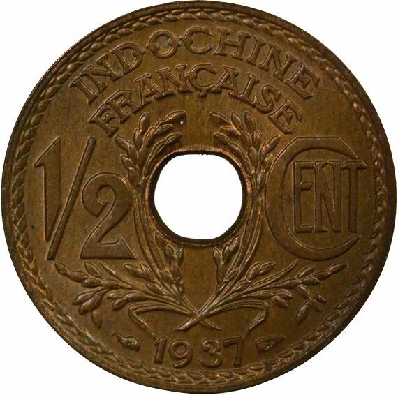 Pièce Indo-Chine Fr. 1/2 Centième - 1937 Paris