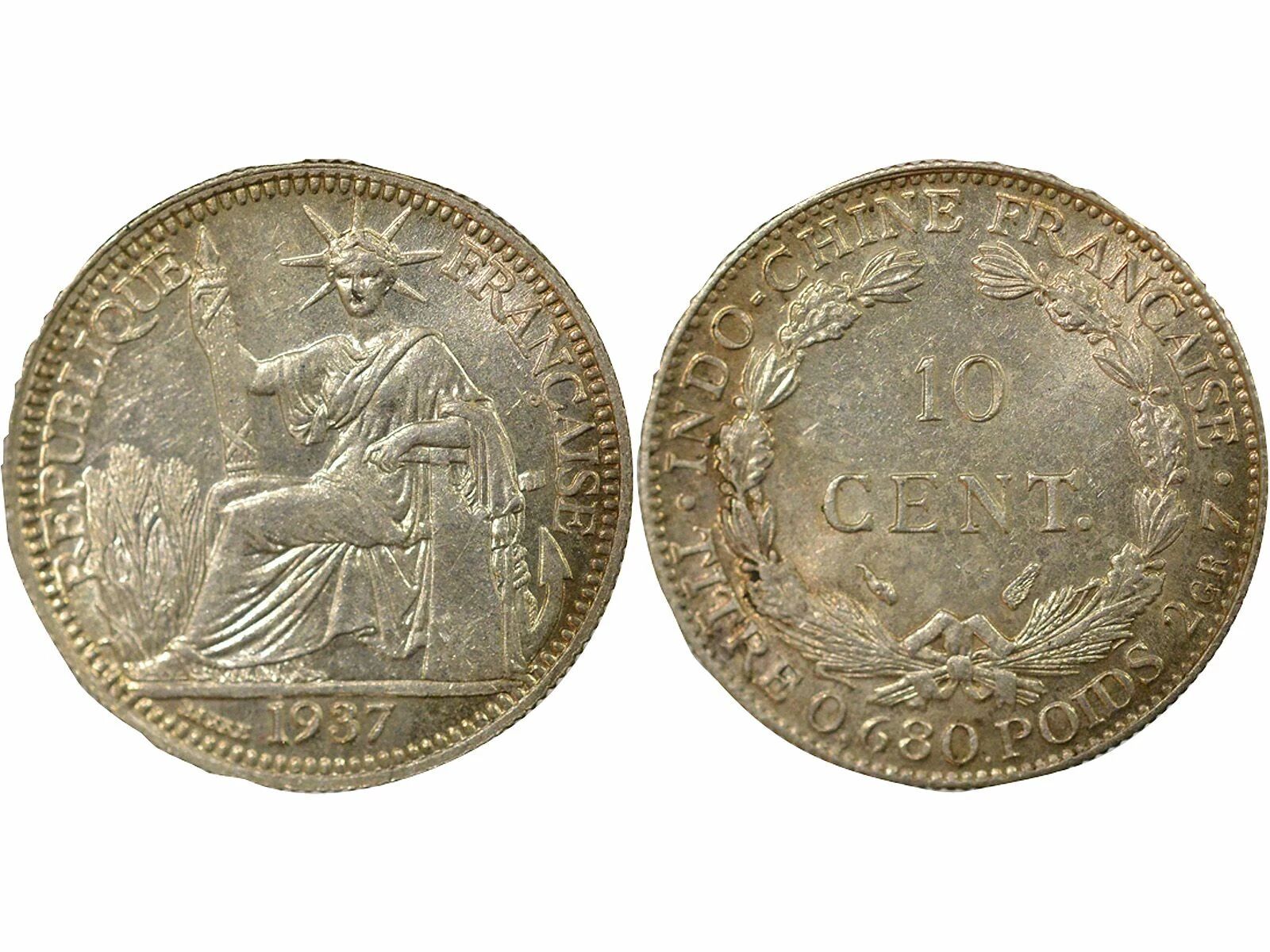 Accueil > Archivage > archivage-Monnaies du monde > Indo-Chine Fr. 10 Centièmes Argent - 1937 Paris