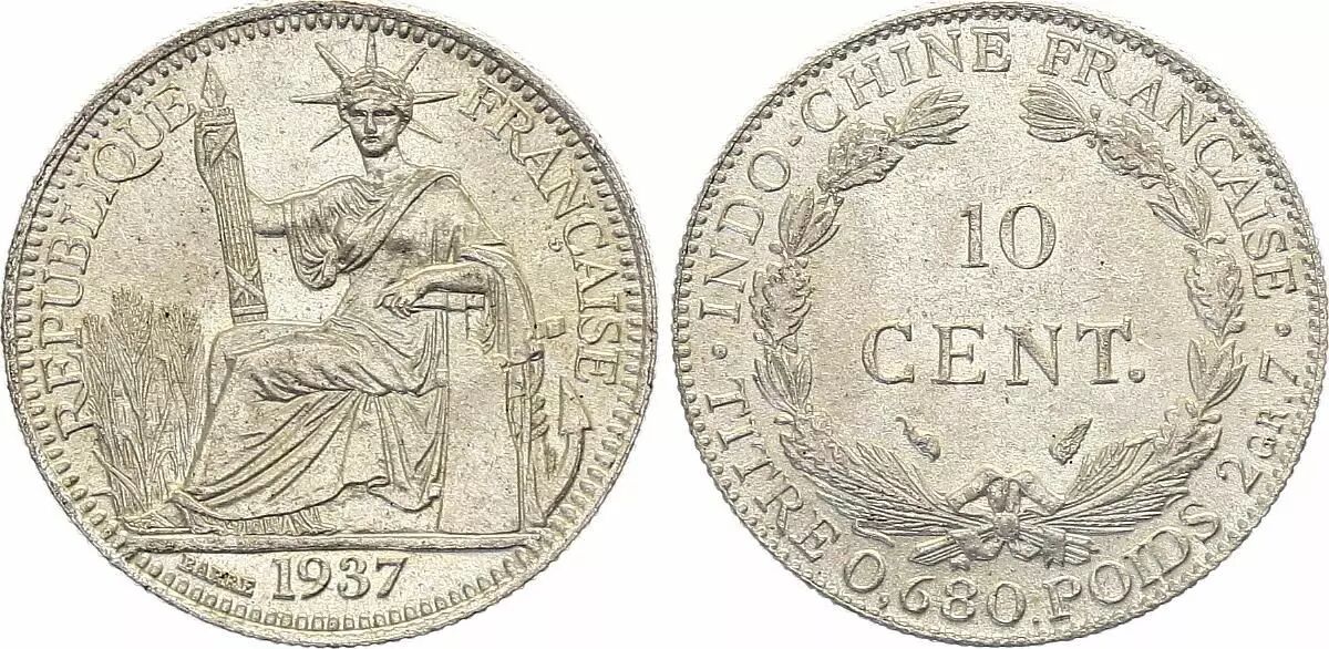 Pièce Indo-Chine Fr. 10 Centimes 1937 - SPL
